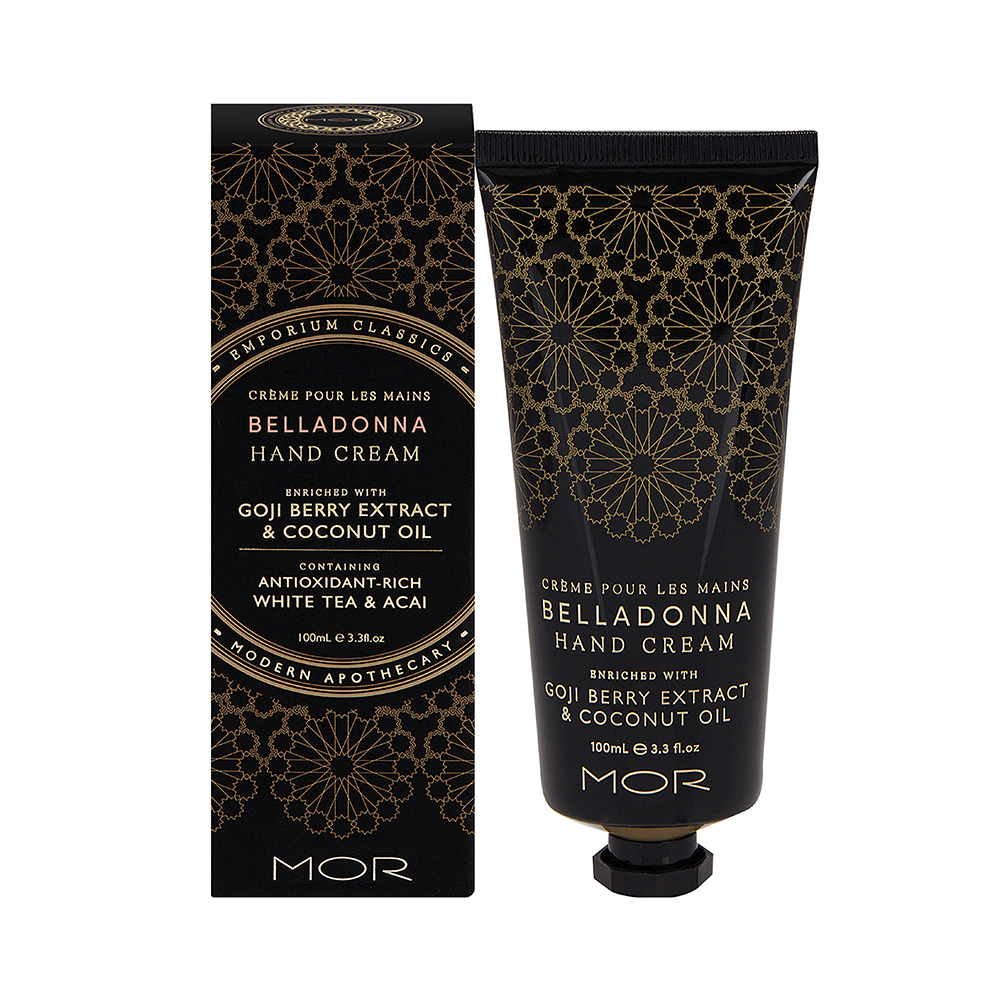 MOR Emporium Classics Hand Cream in Belladonna is a uniquely fragranced hand cream. It has been formulated with antioxidant-rich white tea and acai, and is enriched with fragrance extracts and oils to leave the hands smooth and nourished. The hand cream features a belladonna fragrance.