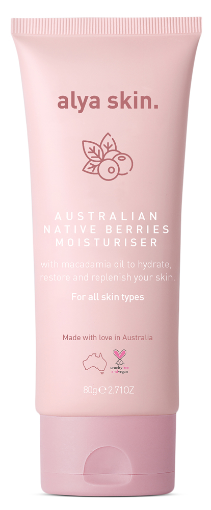 Alya Skin Moisturiser is a moisturiser that delivers many benefits to the skin. It has a bioactive complex of three Australian super berries (pepperberry extract, riberry extract and muntries extract) to rehydrate, restructure and repair the skin. Pepperberry is rich in antioxidants, riberry contains antioxidants and essential minerals, and muntries is rich in anthocyanins. Also formulated with sweet almond oil, macadamia seed oil, shea butter, cacao butter, geranium rose stem oil and vitamin E.