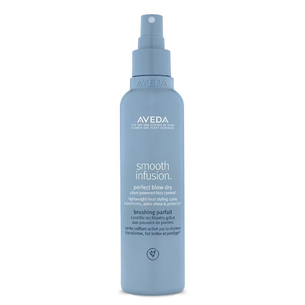 Aveda smooth infusion™ perfect blow dry is a lightweight, heat-activated blow dry treatment that provides an anti-frizz shield for 72 hours. Each strand of hair is wrapped in an invisible anti-humidity shield locking out humidity and keeping frizz-prone styles 5x smoother and sleeker for longer. 100% vegan, also contains UV filters, protecting your shiny sleek blowout from the drying effects of the sun and heat styling up to 232°C.
